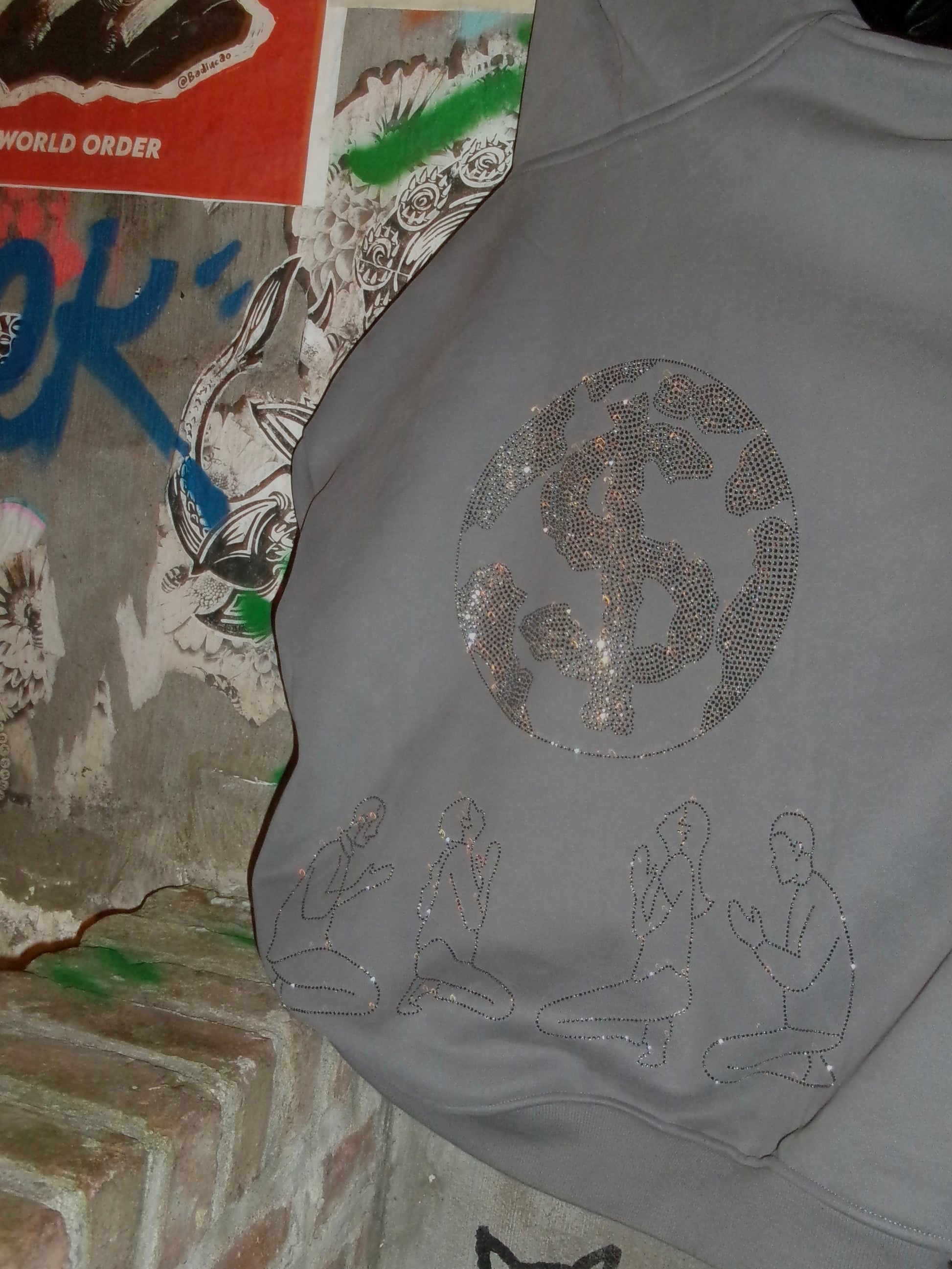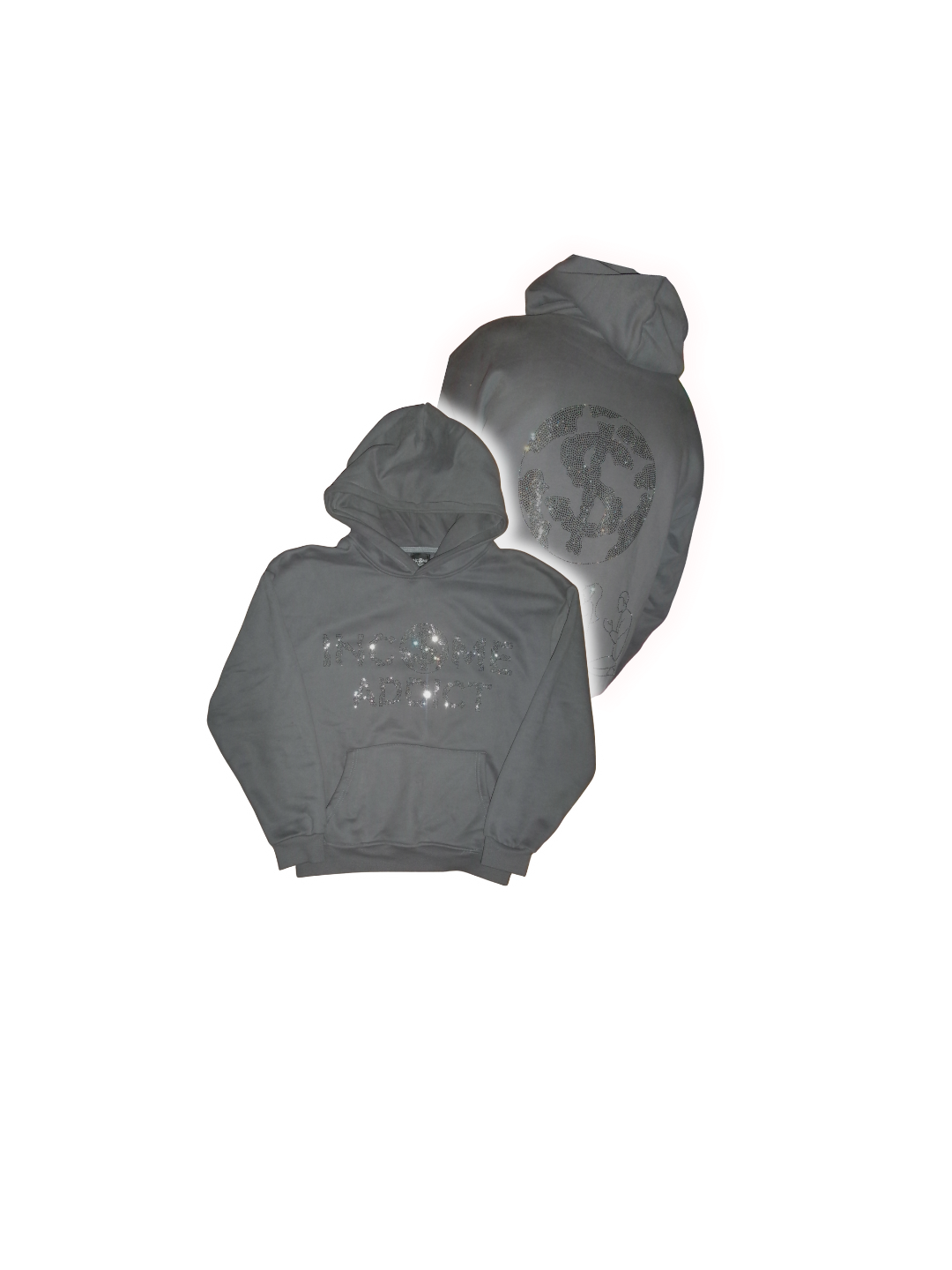 ASH COLOR WITH BLACK RHINESTONE DETAILING. MADE FROM HIGH‑QUALITY COTTON FOR COMFORT. LAUNDRY WASHABLE — AIR DRY TO MAINTAIN FIT. INCOME ADDICT.